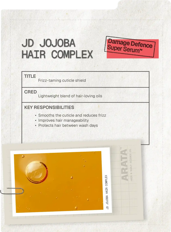 The Arata Super Serum™ is a smart solution for your hair, offering multiple benefits in one product. It not only controls frizz and makes your hair more manageable, but also provides intense nourishment and protection from damage and split ends. It is powered by ‘JD Jojoba Hair Complex’, a fusion of hair-loving plant oils that tackle common issues like frizz, roughness, dullness, damage, breakage, and colour fading.