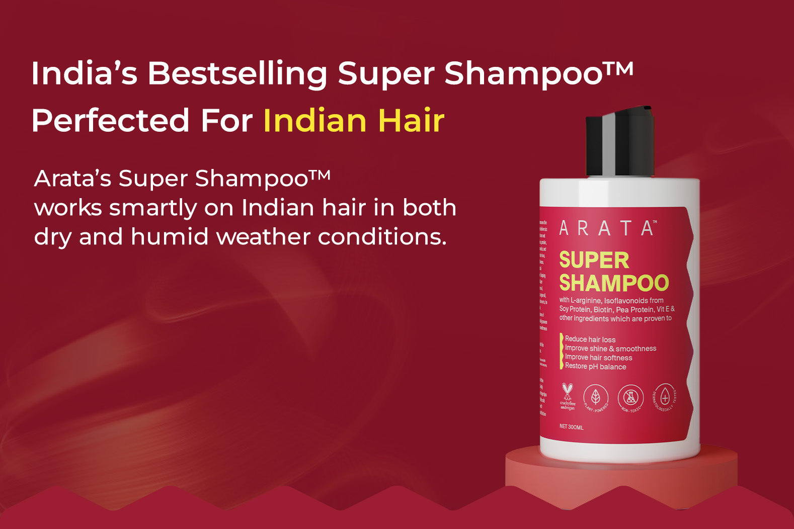 Your damaged hair needs daily nourishment. The Arata Super Shampoo is a 6-in-1 solution that offers root-to-tip treatment, repairing years of hair damage from the first wash. It is backed by potent ingredients that work together to prevent hair loss, restore pH balance, boost thickness, reduce breakage, fight microbial infections, and add a healthy shine to your hair. Crafted by a team of experts, including dermatologists and trichologists, our shampoo has undergone rigorous formulation and testing to ensure its efficacy. As per a test by Mascot Spincontrol (France), Mumbai, it enhances smoothness by 54.4%, increases shine by 35.5%, and boosts strength by 14.5% in one wash.