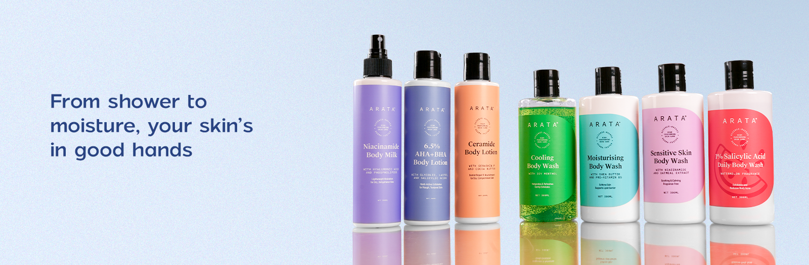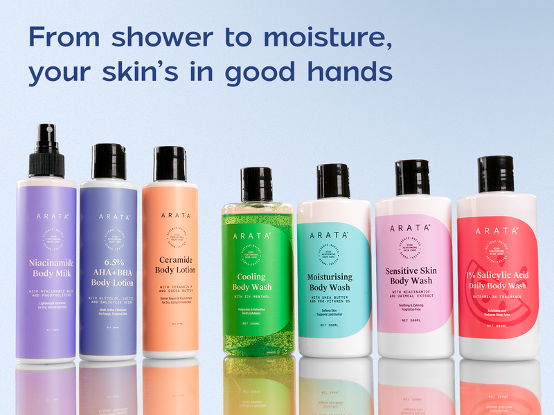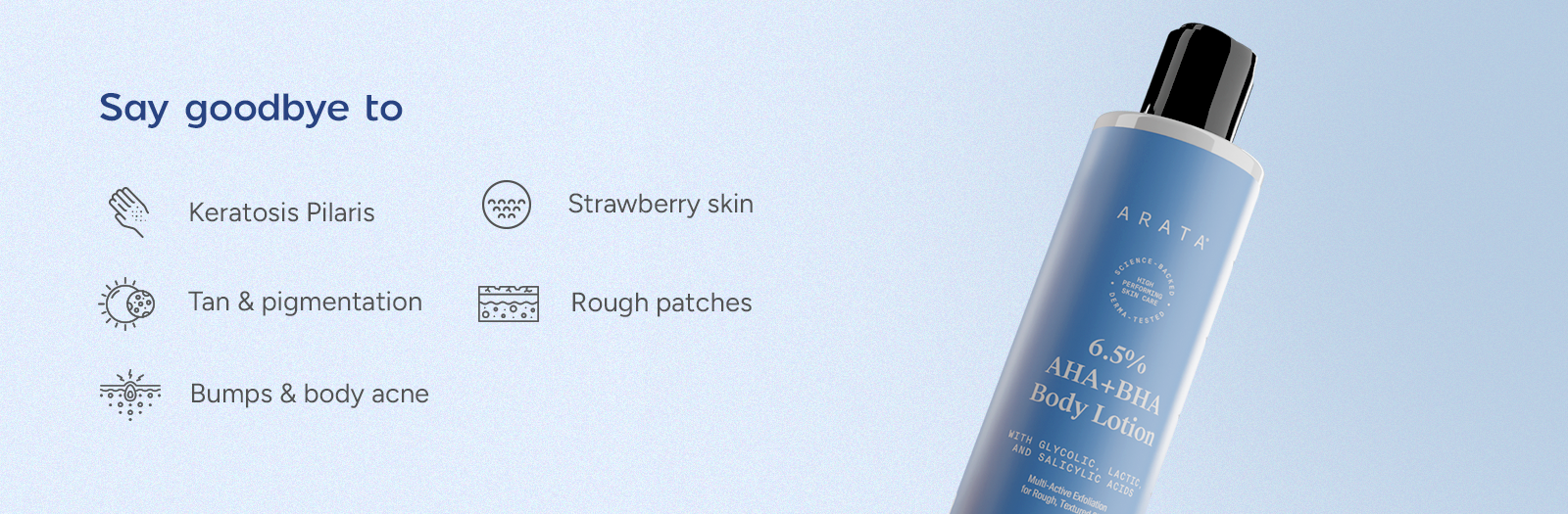 Arata’s 6.5% AHA BHA Body Lotion is a multi-active exfoliating formula designed for daily use. Powered by a potent blend of glycolic, lactic, and salicylic acids, it gently exfoliates dead skin cells to smooth and refine skin texture.