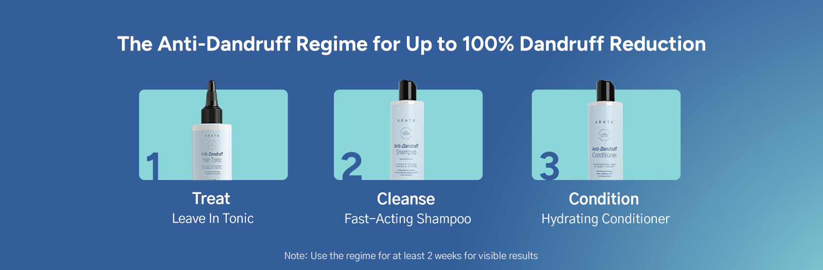Treatment will differ depending on your condition. Anti-dandruff products that contain anti-fungals will work well for dandruff caused by an oily scalp, while using scalp-soothing ingredients will work well for flaking due to a dry scalp. The Arata Anti Dandruff range helps tackle both, thanks to a formula that’s enriched with Piroctone Olamine (an antifungal), and Cutibiome CLR (that balances the scalp’s microbiome and soothes the scalp).