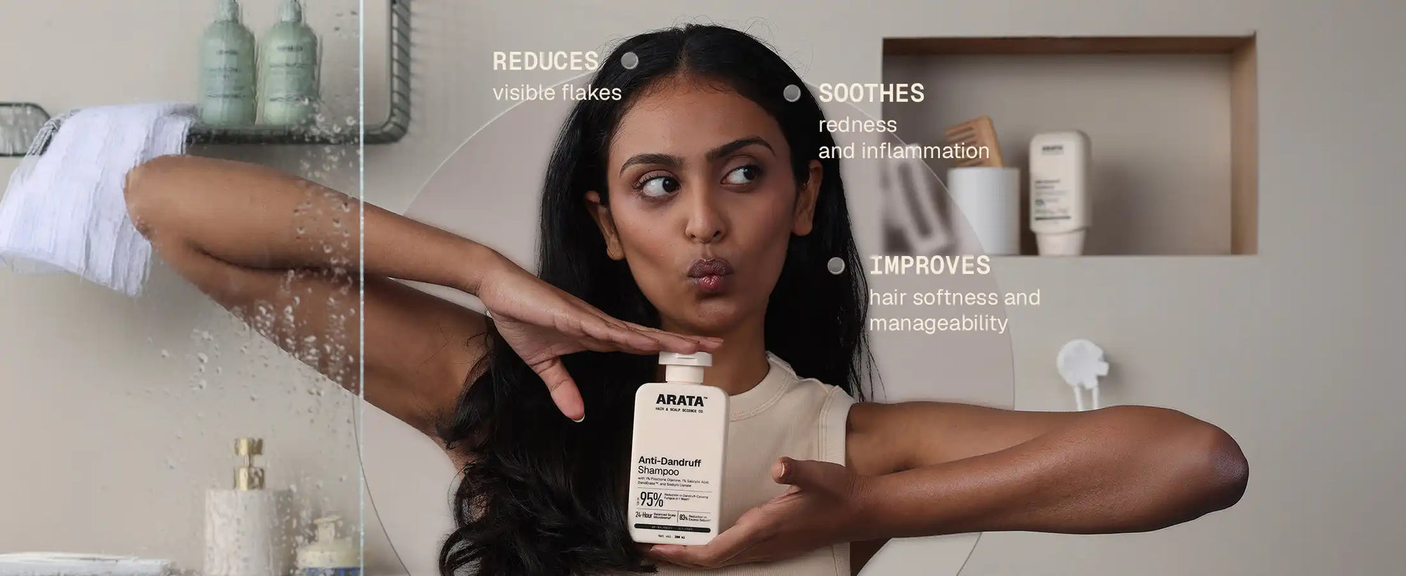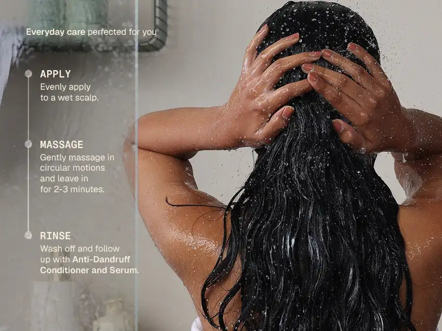 Let’s break it down: Arata Anti-Dandruff Shampoo works best when used as part of our complete anti-dandruff routine. After washing your hair with the Anti-Dandruff Shampoo, use Arata Anti-Dandruff Conditioner for scalp-to-strand hydration and scalp barrier support. For intense and prolonged anti-dandruff action, use Arata Anti-Dandruff Serum as a leave-in treatment.