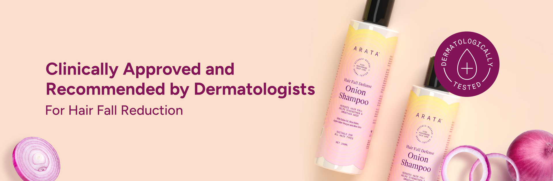 The Arata Hair Fall Defense Onion Combo is suitable for all hair types and is beneficial for those suffering from hair fall & brittle strands.