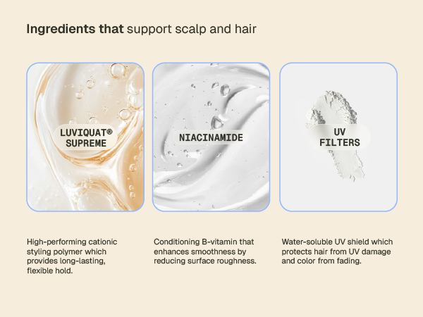 LUVIQUAT® SUPREME: Provides long-lasting, flexible hold that resists humidity.