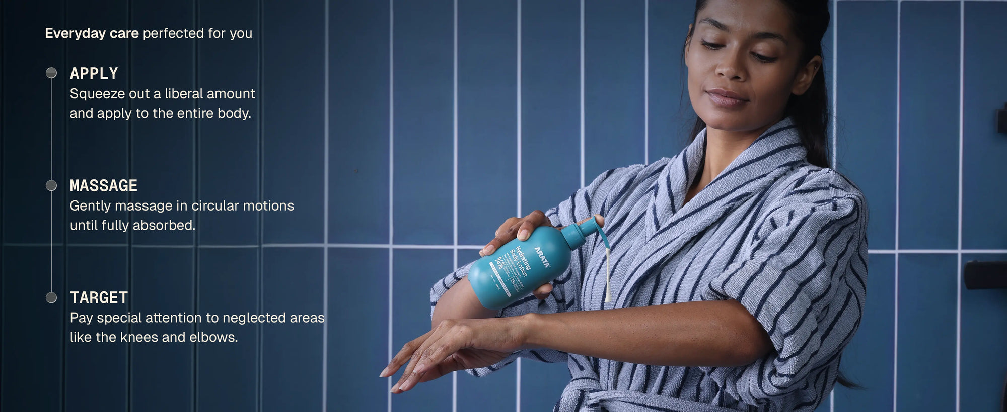 Let’s break it down: We recommend using the Arata Hydrating Body Lotion daily. Your skin loses water and natural lipids every day due to showering, climate, or friction from clothes. Daily usage of our Hydrating Body Lotion helps replenish natural lipids, reduces moisture loss, and keeps the skin barrier functioning the way it’s meant to be.
