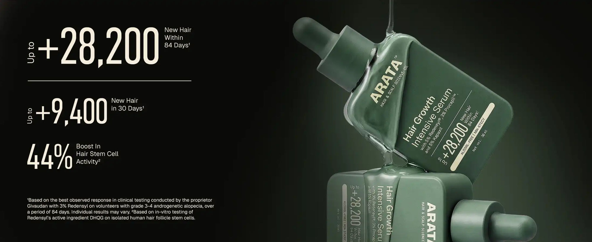 _Based on the best observed response in clinical testing conducted by the proprietor Givaudan with 3% Redensyl on volunteers with grade 3-4 androgenic alopecia, over a period of 84 days. Individual results may vary.