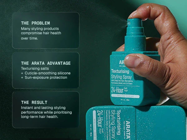 Most texturising hair sprays take the harsh route. They deliver instant volume but can leave hair feeling dry, crunchy, and brittle over time. Arata Texturising Styling Spray is built differently. ItÕs a high-performance formula designed to add volume and texture while supporting hair health at the same time.