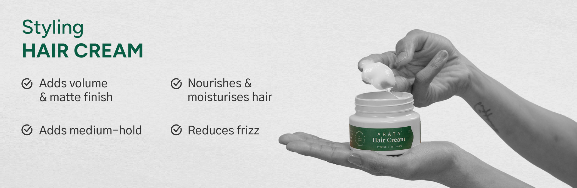 Arata's Styling Cream is more than just a styling product—it's a holistic solution that sculpts your hair without causing damage and hair fall. Experience the perfect fusion of styling and care with our Hair Cream.