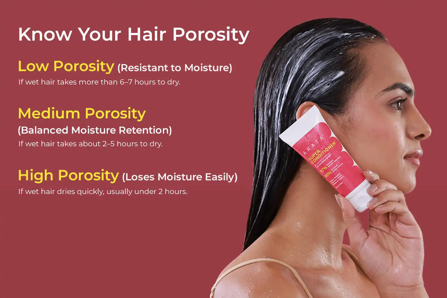 High Porosity Hair: After shampooing, make sure your hair is dripping wet. Divide your hair and evenly apply the conditioner to each section, focusing on the mid-lengths and ends. Leave it on for up to 60 seconds or more Rinse with cool water to seal the cuticle and reduce moisture loss.