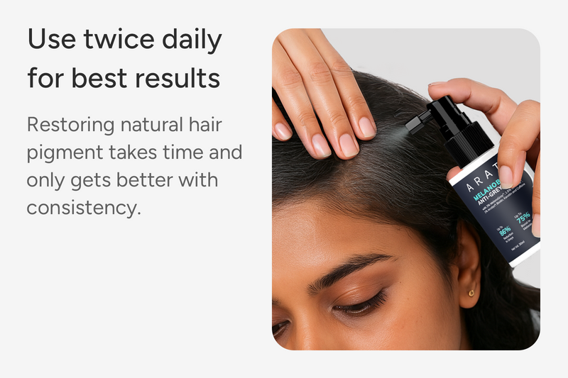 It boosts melanin production and reduces oxidative stress, helping restore natural hair colour.